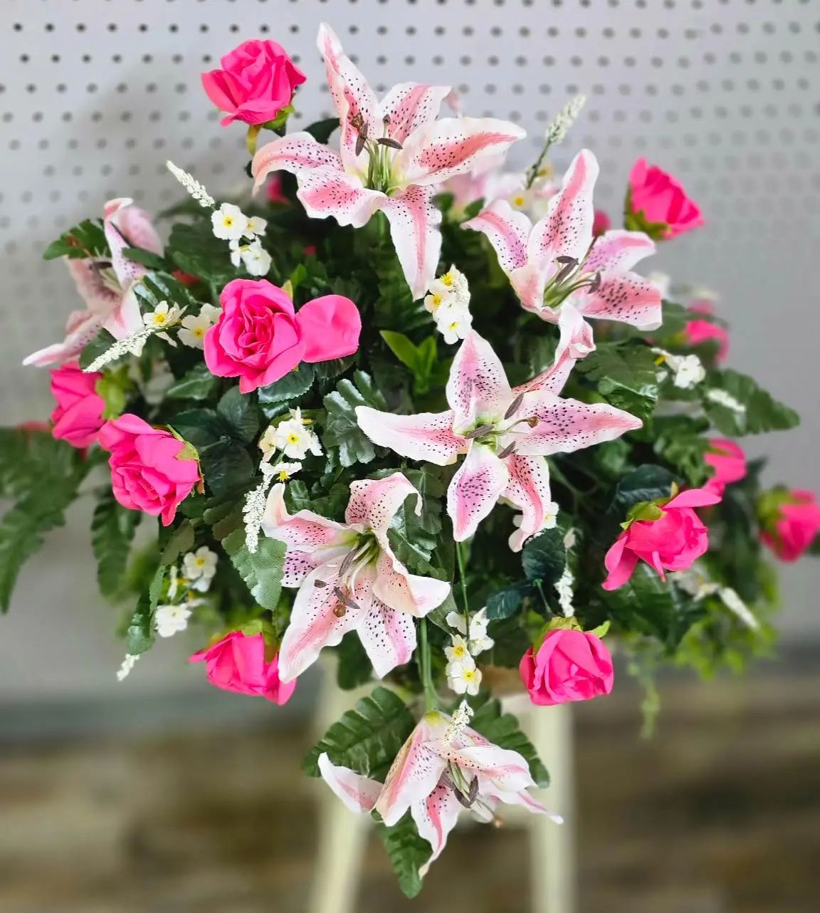 All of our Silk Arrangements and Wreaths are one of a kind. Concerning our sympathy flowers, we strive to fulfill your order as pictured; however, substitutions may be necessary due to flower availability. When substitutions are made, we match color and size as closely as possible and always use blooms of equal or greater value. If you prefer shipping, call this number (308) 470-6006